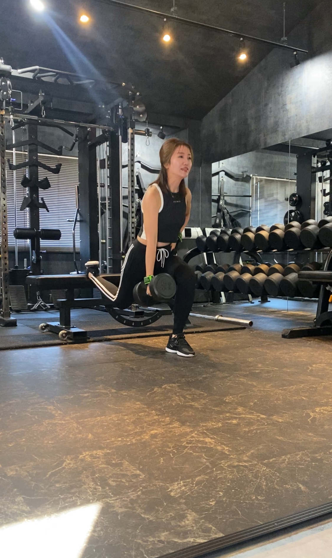 脚トレーニング(15kg)苦手なブルガリアンスクワット!お尻をもう少し下げなきゃなーと動画を見て反省するも、自重でもフラフラだったのに、いつの間に15kg抱えて出来るようになったのかと褒めたい・・・(ポジティ部笑)しっかり有言実行し、体重・体脂肪共に減量しましたが、この日もきちんと、、、