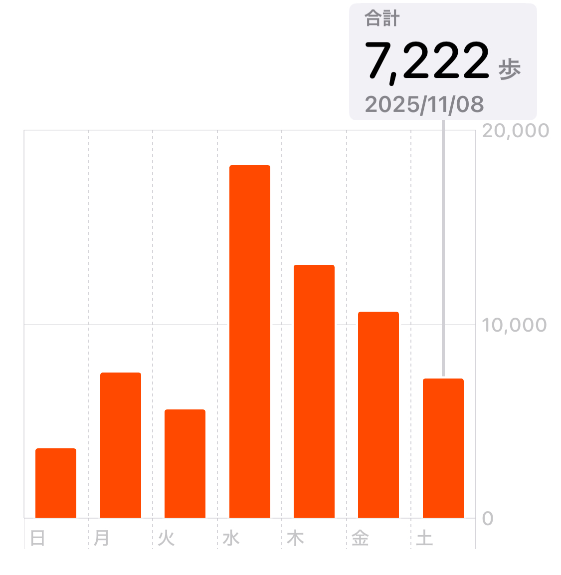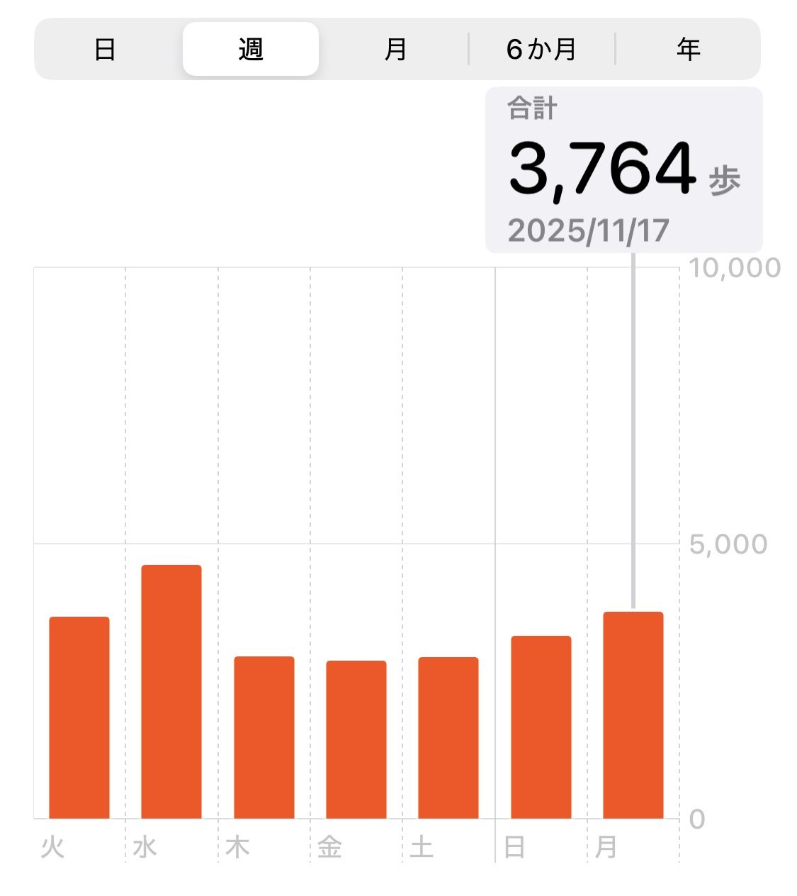 腹痛が凄く検査に行きお休みしたのですが、検査は問題なく^^ホッとしたのも束の間!次は娘が翌日から発熱し(こちらも半年以上ぶりのお熱w)先週は運動量が最悪ですwどのくらいかというと・・・歩数も普段は気をつけて、