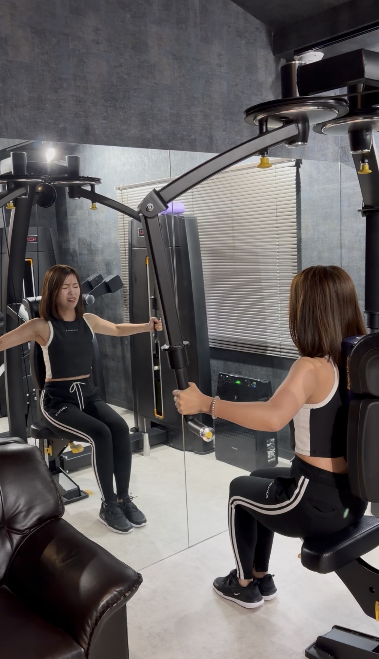 ・ラットプル(背中トレーニング 25kg)こうやって見ると背中は結構逆三角形になってきました^^嬉